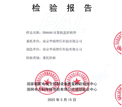 电科院报告:HR8000计算机监控软件V1.0 获取国网电科院检测报告