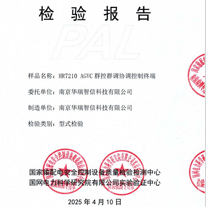 电科院报告:HR7210AGVC群控群调协调控制终端获取国网电科院检测报告
